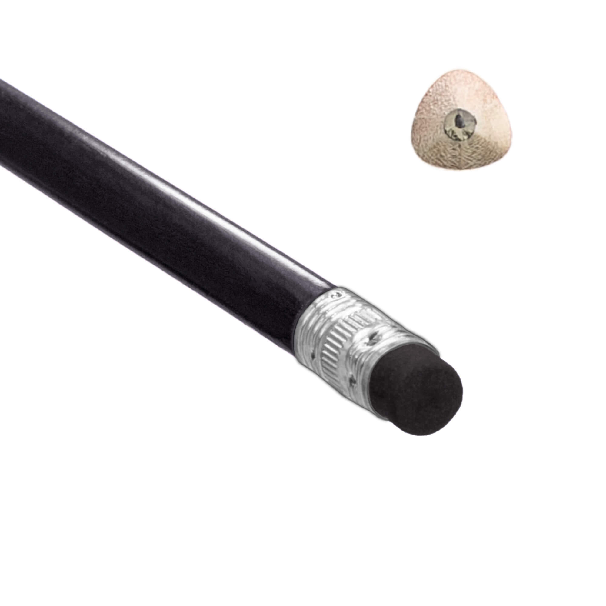 Популярная чернографитовая модель шестигранного карандаша с ластиком. Удобно делать принты разделяя их по граням по очереди или напротив друг другу. Минимальная партия под печать - 500 штук. Интересным решением будет нанесение логотипа гравировкой на одну из плоскостей по всей длине корпуса.